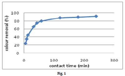 初始濃度對顏色去除的影響如圖3所示。從圖中可以明顯看出,在初始階段,顏色去除是快速的。此外,對于相同的平衡時間,對于初始濃度的較大值,顏色去除率較高,或者較低濃度的吸附百分比越多,并且隨著初始濃度的增加而降低。這可能是由于以下事實:對于固定的活性炭劑量,總有效吸附位點受到限制,從而吸附幾乎相同量的吸附物,從而導致吸附物的吸收百分比降低,相應于初始吸附物濃度的增加。活性炭在1小時內(nèi)達到約97%的顏色去除。