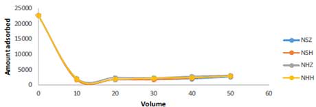 通過改變通過柱子并與活性炭接觸的廢水的量來實現廢水的體積對每種測試活性炭的吸附能力的影響。四種原材料做成的活性炭對微生物參數的吸附趨勢相似。吸附細菌和真菌的最有效的初始體積是10cm3。在初始體積為10cm 3時,活性炭有效地吸附廢水中的高細菌和真菌負荷,此后吸附量幾乎保持恒定,如圖4和5所示。