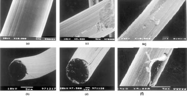 圖1。活性炭纖維的SEM照片覆蓋有金銀銅膜。