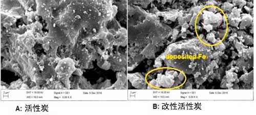 將40g氧化的活性炭與200ml FeCl 3混合。6H 2 O溶液含有2.5%的Fe 3+,并通過加入1N NaOH溶液將pH調節至12。Fe的浸漬在80℃下在150rpm旋轉的振蕩器上進行24小時。浸漬的活性炭在300℃下在N 2氣氛下煅燒3小時。然后用蒸餾水洗滌幾次,在110℃下干燥24小時。
