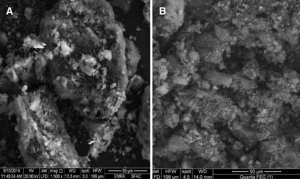 活性炭的SEM顯微照片顯示在圖.1a,b中。活性炭在吸附前的SEM圖像(圖.1a)顯示了單個(gè)顆粒的不規(guī)則大小和形狀以及不均勻表面形態(tài)。多孔結(jié)構(gòu)呈現(xiàn)出不同的寬度。吸附后,很明顯,該孔已覆蓋的草氨酰(圖.1的B)。