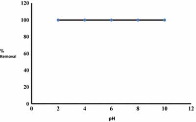 在2-10的pH范圍內(nèi)研究活性炭對(duì)草酰胺的吸附。通過(guò)在不同pH下?lián)u動(dòng)1g活性炭和100mL的草酰胺溶液(500mg / L)來(lái)研究初始溶液pH的影響。將燒瓶攪拌2小時(shí)。通過(guò)加入少量的HCl(0.1M)或NaOH(0.1M)將溶液的pH值調(diào)節(jié)到所需的值。