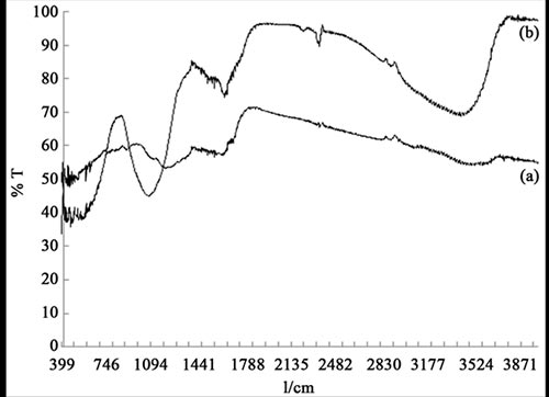 圖1:(a)的FT-IR光譜; 活性炭(b); 氧化鐵納米顆粒負載在活性炭上。