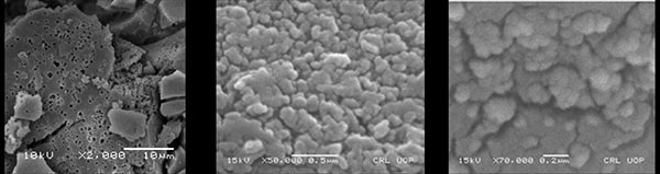 氧化鐵納米顆粒(8-15nm)負載在粒徑為149-177μm的活性炭上。FT-IR光譜顯示活性炭的表面官能團為:OH,NH(3100-3500 cm-1),CH芳香族化合物(3000-3100 cm-1),CH脂肪族化合物(2800-3000 cm-1),C=O和CO(1640-1750cm-1)。負載在活性炭上的氧化鐵納米粒子的FT-IR表明在1050厘米脂族磷酸鹽拉伸特征峰-1和2300厘米-1并在470厘米赤鐵礦-1和570厘米-1所示圖1。SEM圖像顯示活性炭的多孔表面形態,并且還反映了氧化鐵納米顆粒在活性炭表面上的分散,如圖2所示。